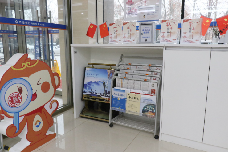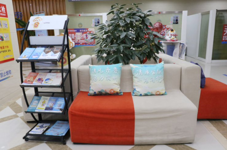 滨州分行不断强化清廉金融文化建设氛围,开辟清廉金融文化传播阵地,打造“清风齐鲁 活力滨州”清廉金融文化微场景,在各支行打造清廉金融文化宣传专区,设立宣传窗口、图书角,大力营造以“清”为美、以“廉”为荣的厅堂氛国,助力打造“儒风齐鲁 清廉金融”文化品牌。